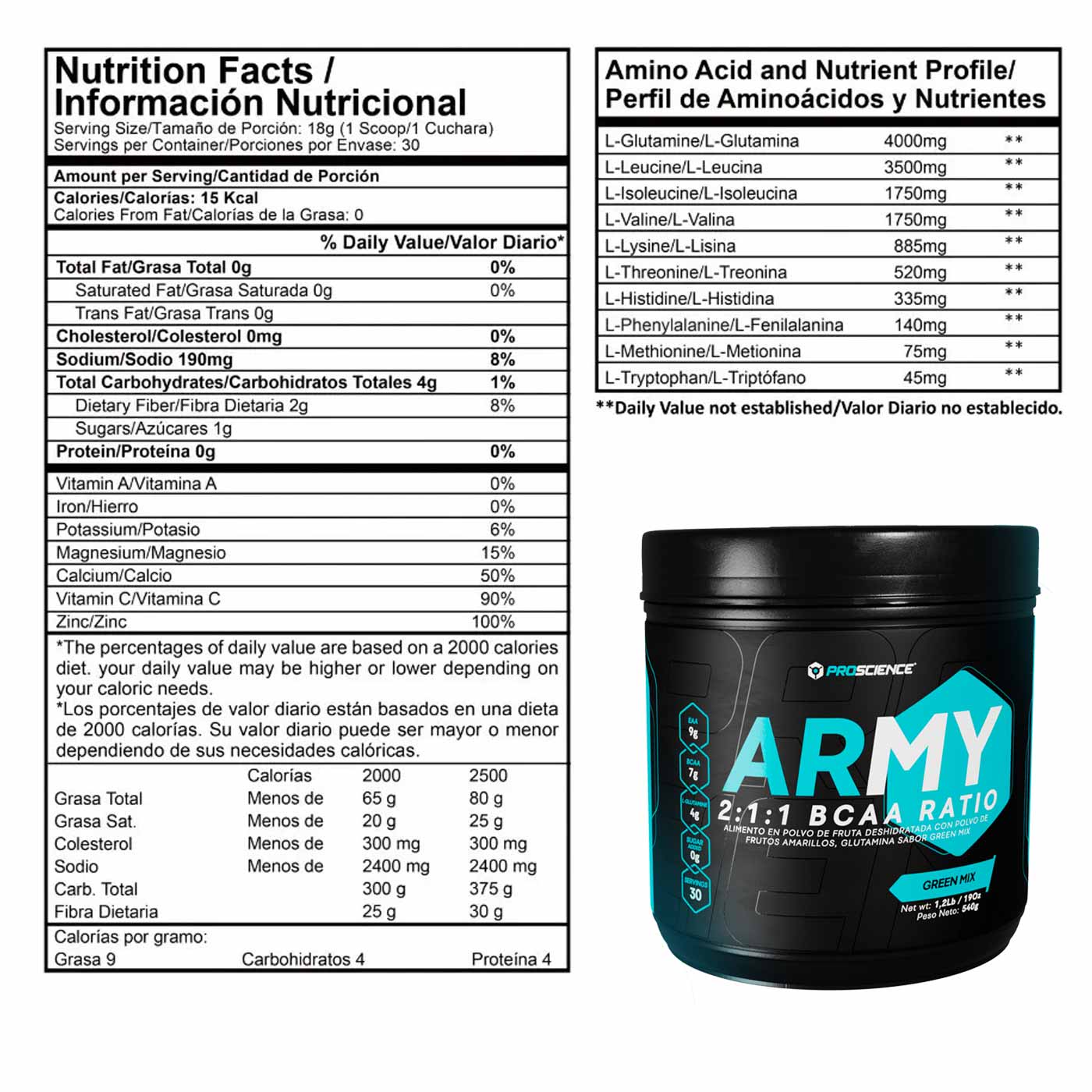 Army es un anticatabólico rico en aminoácidos, enriquecido además con EAA (Leucina, Isoleucina, Valina, Lisina, Treonina, Histidina, Fenilalanina, Metionina, Triptófano) y con una sinergia nutricional excelente. Por supuesto, nos esmeramos en darle un sabor igual de excepcional ¡No te lo puedes perder!