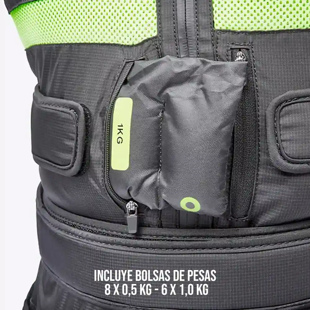 Los hombros acolchados y las bolsas de peso con cierre de cremallera te permiten entrenar libremente y sin molestias; dándote la capacidad de concentrarte y encontrar tu siguiente nivel.